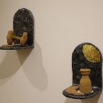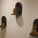 The clay sculptures produced during these workshops were thoughtfully displayed on sculptural wall shrines, and accompanied by a selection of larger sculptures that I made in response to the local archaeology of the area. In this way ancient and contemporary domesticity were brought into conversation.