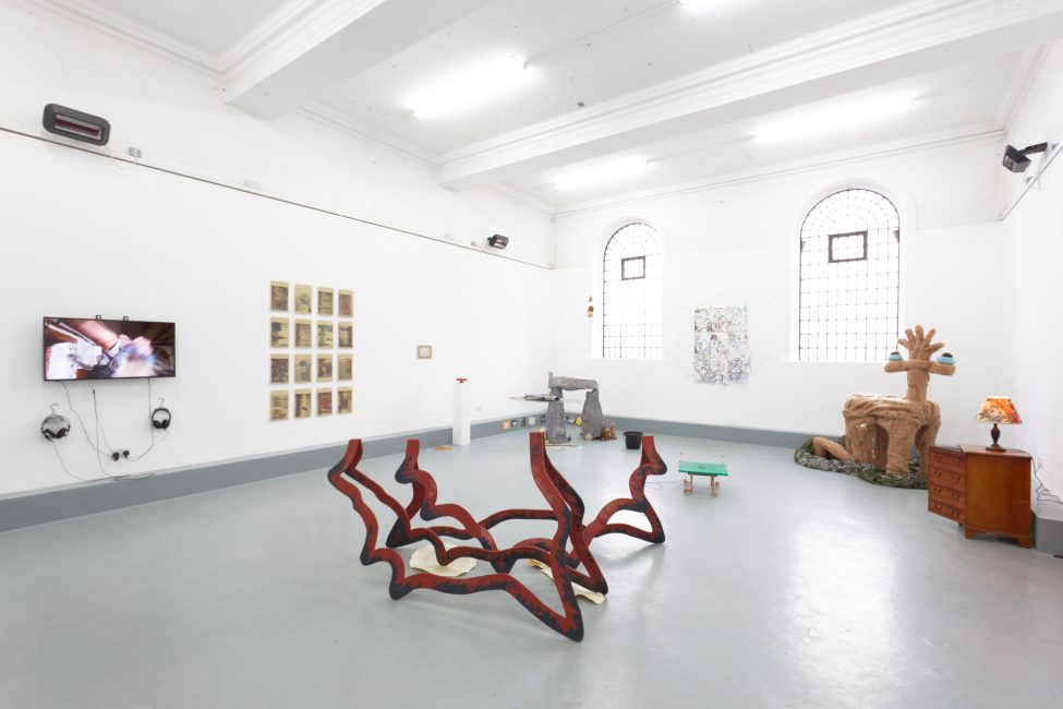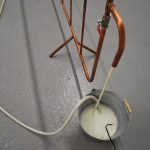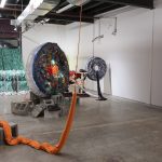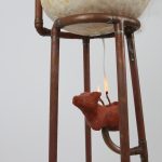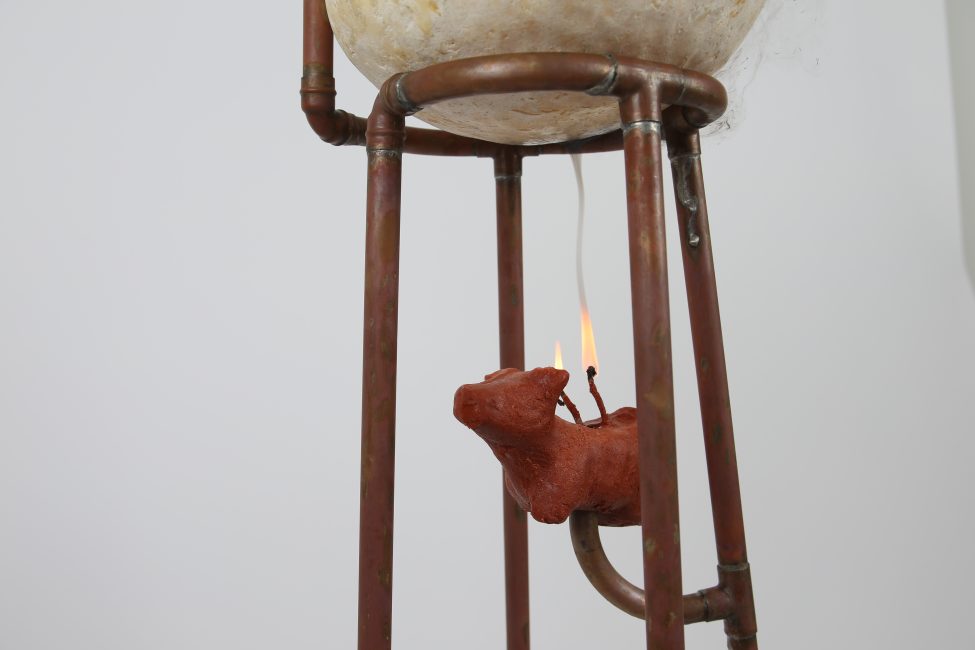 Row 2: Beef tallow sculptures continued, cyanotypes made using microscope images of mould, Skimmer Separator – a sculpture made from copper pipes that processes milk in the gallery