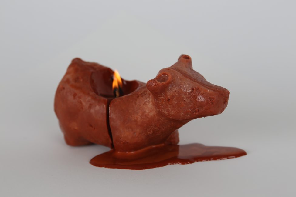Row 1: Work in progress and experimental work: dairy sculptures and cheese fungi, beef tallow sculptures and milk sculptures combined with copper pipe elements, beef tallow sculptures in COVEN group show.